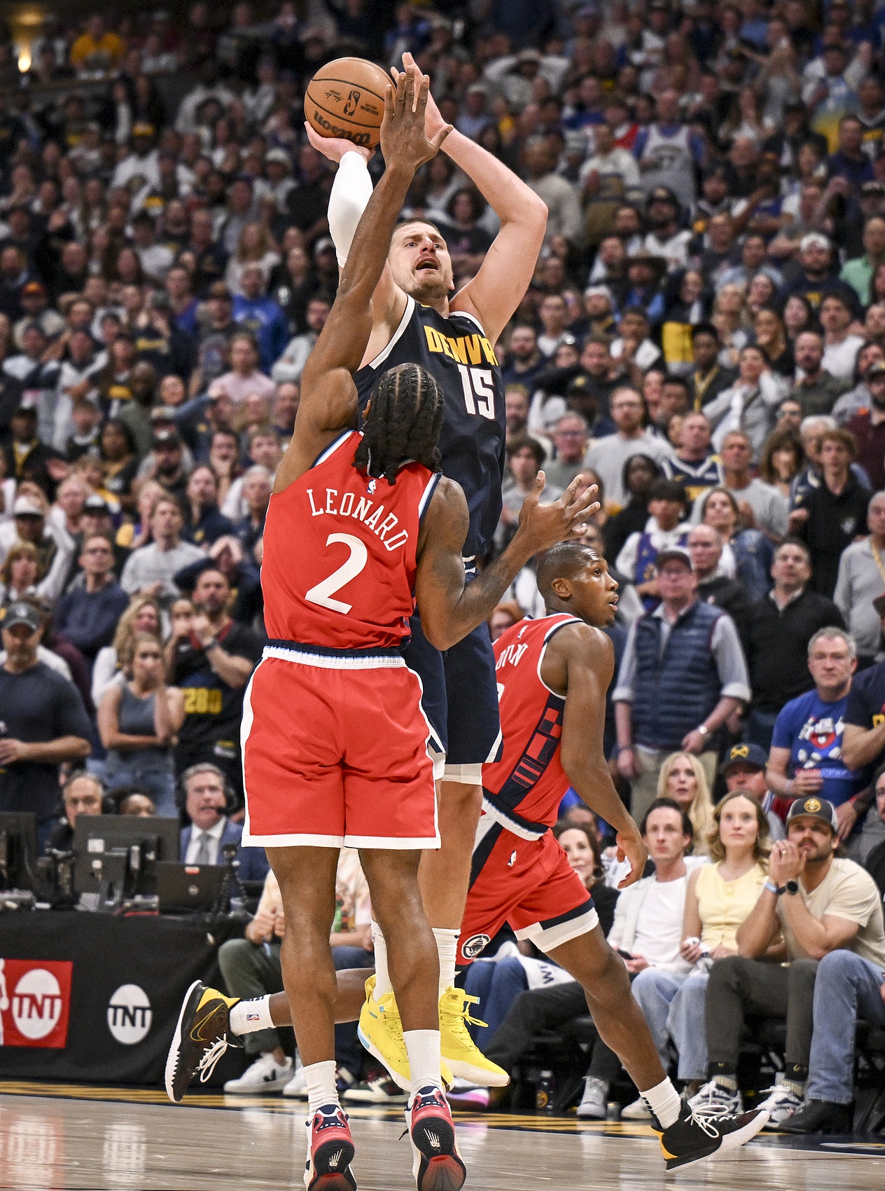 NBA官网数据显示,莱昂纳德系列赛前两场防守掘金球员时,对手合计21次出手仅打进4球,具体如下:
