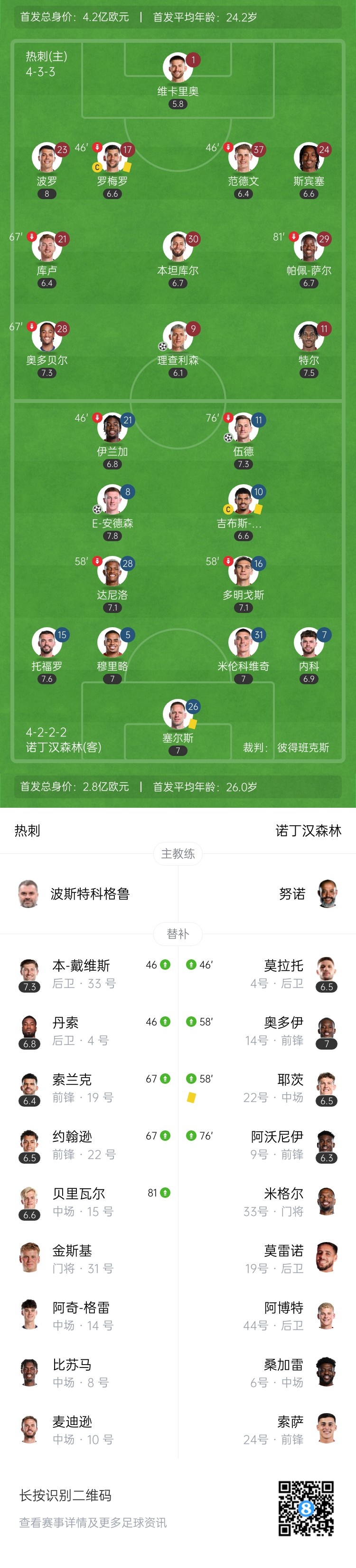 第87分钟,屡失良机后的理查利森终于破门!波罗右路传中,理查利森头球将皮球送进球门左侧!热刺扳回一球1-2森林↓